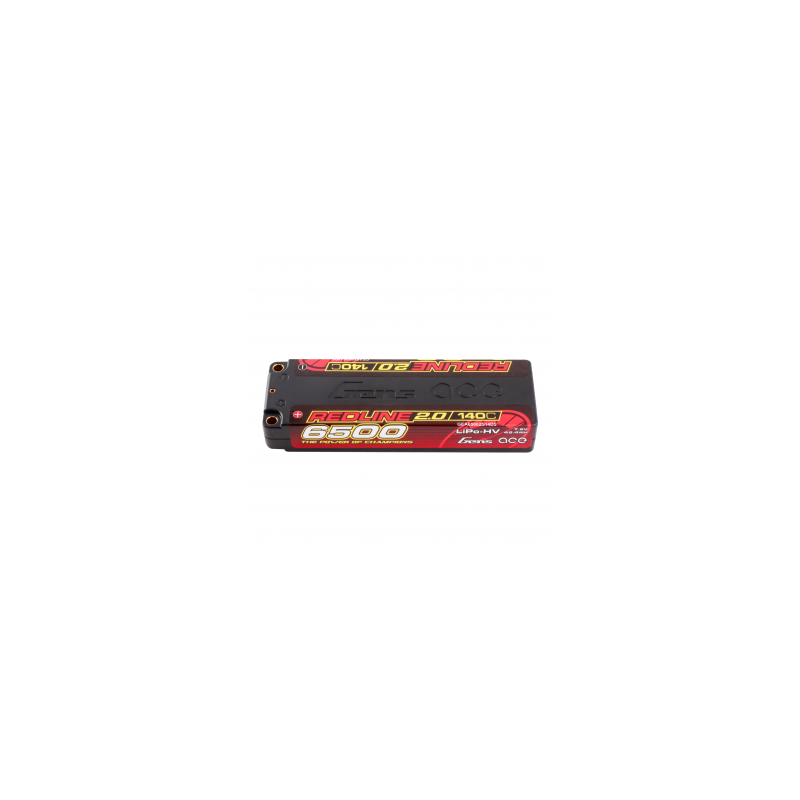 Gens Ace Redline 2.0 Series 2S 140C 6500mAh Hardcase LiPo Battery Pack, with a factory installed 5.0mm bullet. Consumers trust the Gens Ace name to deliver the dependability and high performance they expect. The Gens Ace 140C 2S 6500mAh 7.6V HV LiPo battery pack has a high-capacity, high-discharge rate that gives you the power and run-time you expect .