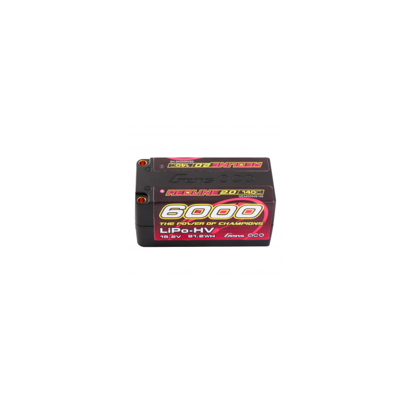 Gens Ace Redline 2.0 Series 4S 140C 6000mAh Hardcase LiPo Battery Pack, with a factory installed 5.0mm bullet. Consumers trust the Gens Ace name to deliver the dependability and high performance they expect. The Gens Ace 140C 4S 6000mAh 15.2V HV LiPo battery pack has a high-capacity, high-discharge rate that gives you the power and run-time you expect .