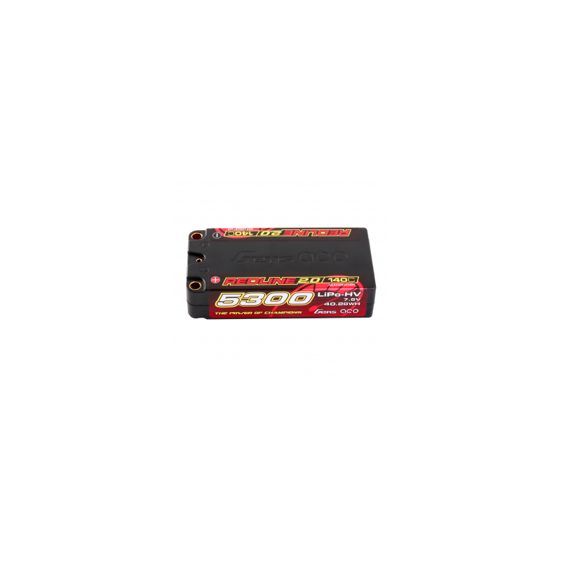 Gens Ace Redline 2.0 Series 2S 140C 5300mAh Hardcase LiPo Battery Pack, with a factory installed 5.0mm bullet. Consumers trust the Gens Ace name to deliver the dependability and high performance they expect. The Gens Ace 140C 2S 5000mAh 7.4V HV LiPo battery pack has a high-capacity, high-discharge rate that gives you the power and run-time you expect .