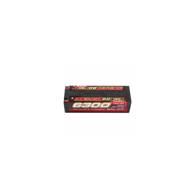 Gens Ace Redline 2.0 Series 4S 140C 6300mAh Hardcase LiPo Battery Pack, with a factory installed 5.0mm bullet. Consumers trust the Gens Ace name to deliver the dependability and high performance they expect. The Gens Ace 140C 4S 6300mAh 15.2V HV LiPo battery pack has a high-capacity, high-discharge rate that gives you the power and run-time you expect .