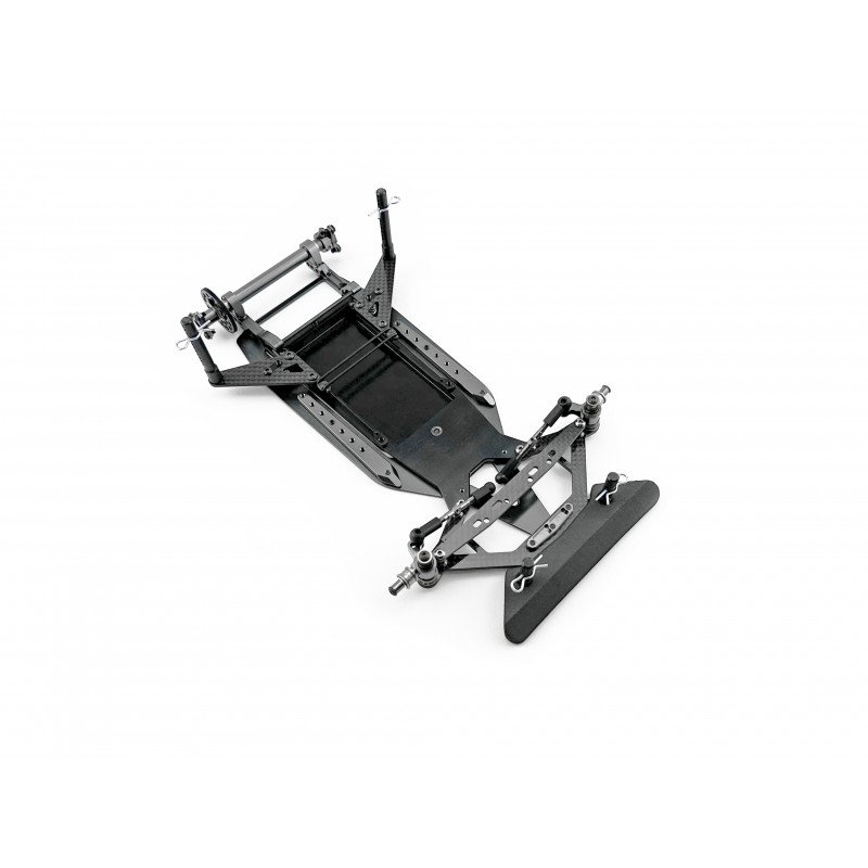 A new battery plate coupled with a new front suspension plate enabling a wider range of roll centres options. New left and right rear hubs allow truer and more reliable mounting for a wider variety of wheels. Two new tools for precise adjustment during build and fine tuning of the car setup are included in the kit.