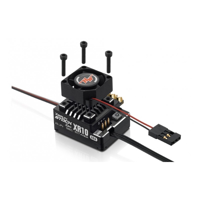 The built-in switch mode BEC with a maximum output of 6A and voltage adjustable between 6V and 7.4V allows the user to use various high voltage servos.