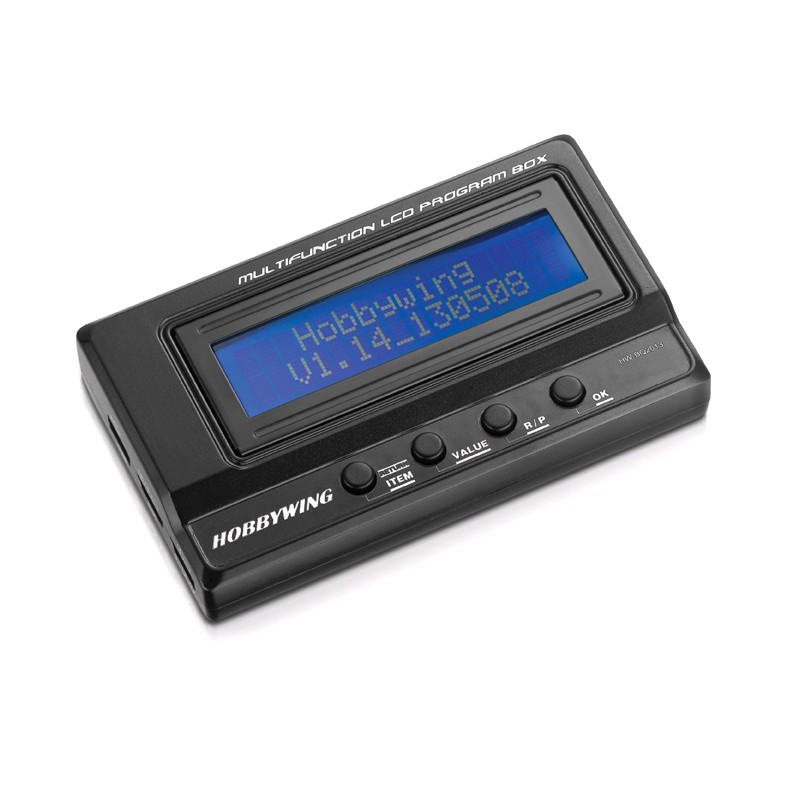 This multifunction program box is for programming HobbyWing brushless ESCs. Its friendly LCD interface makes ESC programming easy and quick. With a PC, you can upgrade ESC firmware and further adjust ESC parameters online. Besides, it’s compact, portable and very applicable for field use.