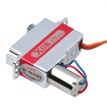 The X08 Plus V6.0 is a plus version of the KST X08 servo, making it suitable for use in wings and other flying surfaces. The KST X08 Plus V6.0 is a very light (9.0g) low/medium/high voltage metal cased servo. It is based on the well-regarded KST X08 V6 servo but with a larger motor fitted. KST X08 Plus V6.0 takes it another step forward by not only further improving the gearset to minimize potential slop, but the servos are now programmable with the KST Tool Card #1/ KST Tool Card #5 (sold separately) to adjust the endpoints, center, and direction for the perfect installations.